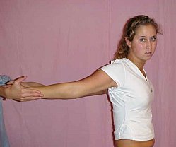 Beide Arme gestreckt nach hinten führen. Der Partner