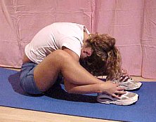 Die Arme greifen von innen um die Unterschenkel nach vorn